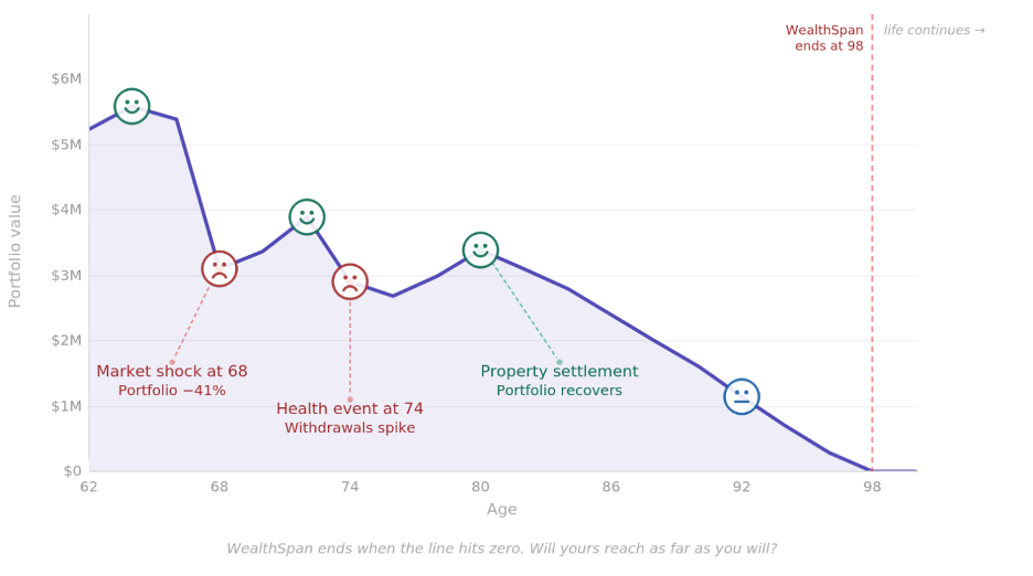 The right question — the one these charts are designed to surface — is simpler and more empowering: what do I have to do to ensure my WealthSpan reaches as far as I will?